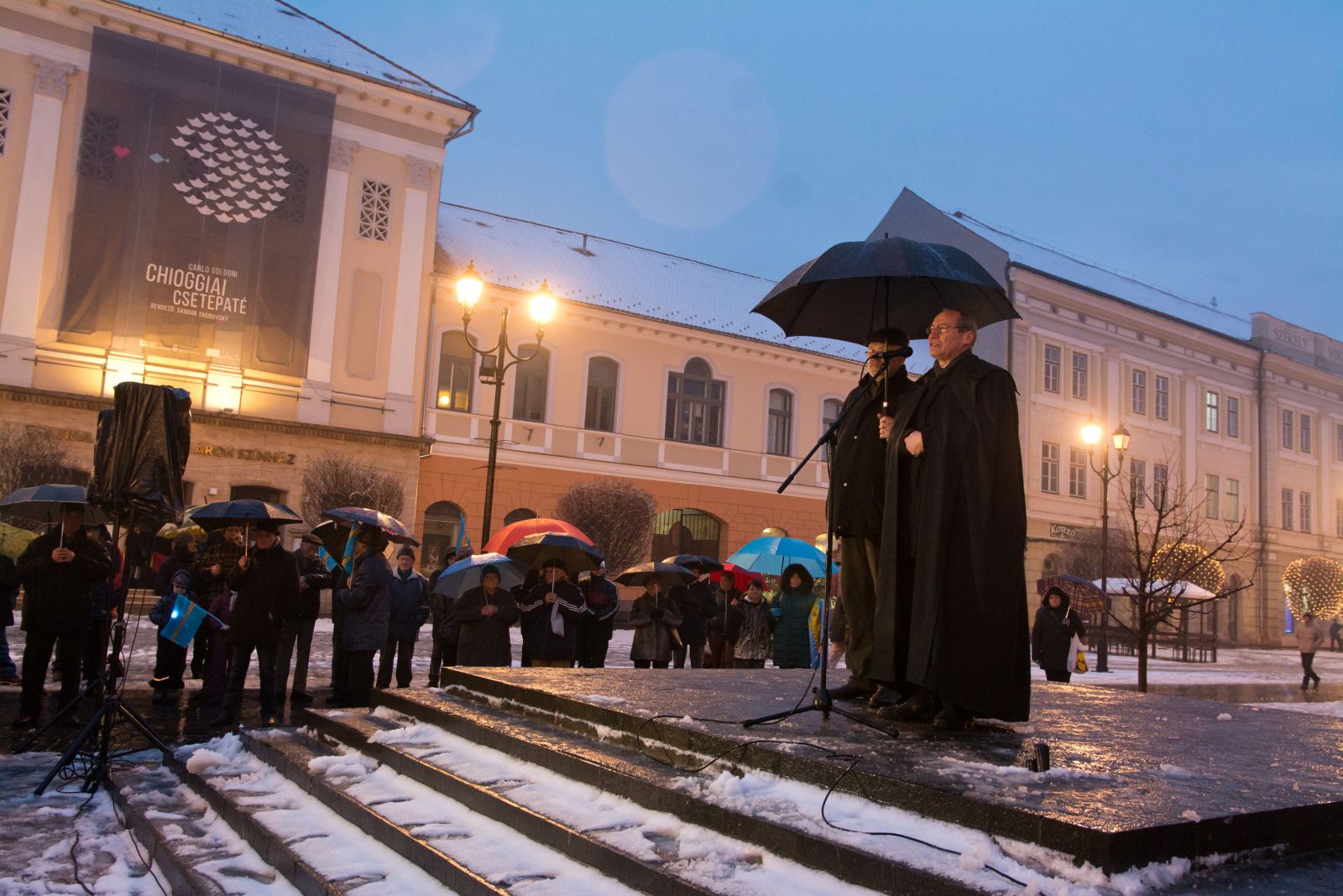 „Ugyanaz lesz a válaszom, mint amikor, nem tudom milyen nap alkalmából, zászlót próbáltak kitűzni. Ekkor világossá tettem, hogy ha az a zászló lobogni fog a szélben, ott fognak lengeni mellette a helyi felelősök is” – idézte Mihai Tudose nyilatkozatát Gazda Zoltán és azt kérdezte az egybegyűltektől, hogy mi erre a válaszuk. „Autonómiát! Autonómiát!”, skandálták válaszként a tiltakozó háromszékiek.