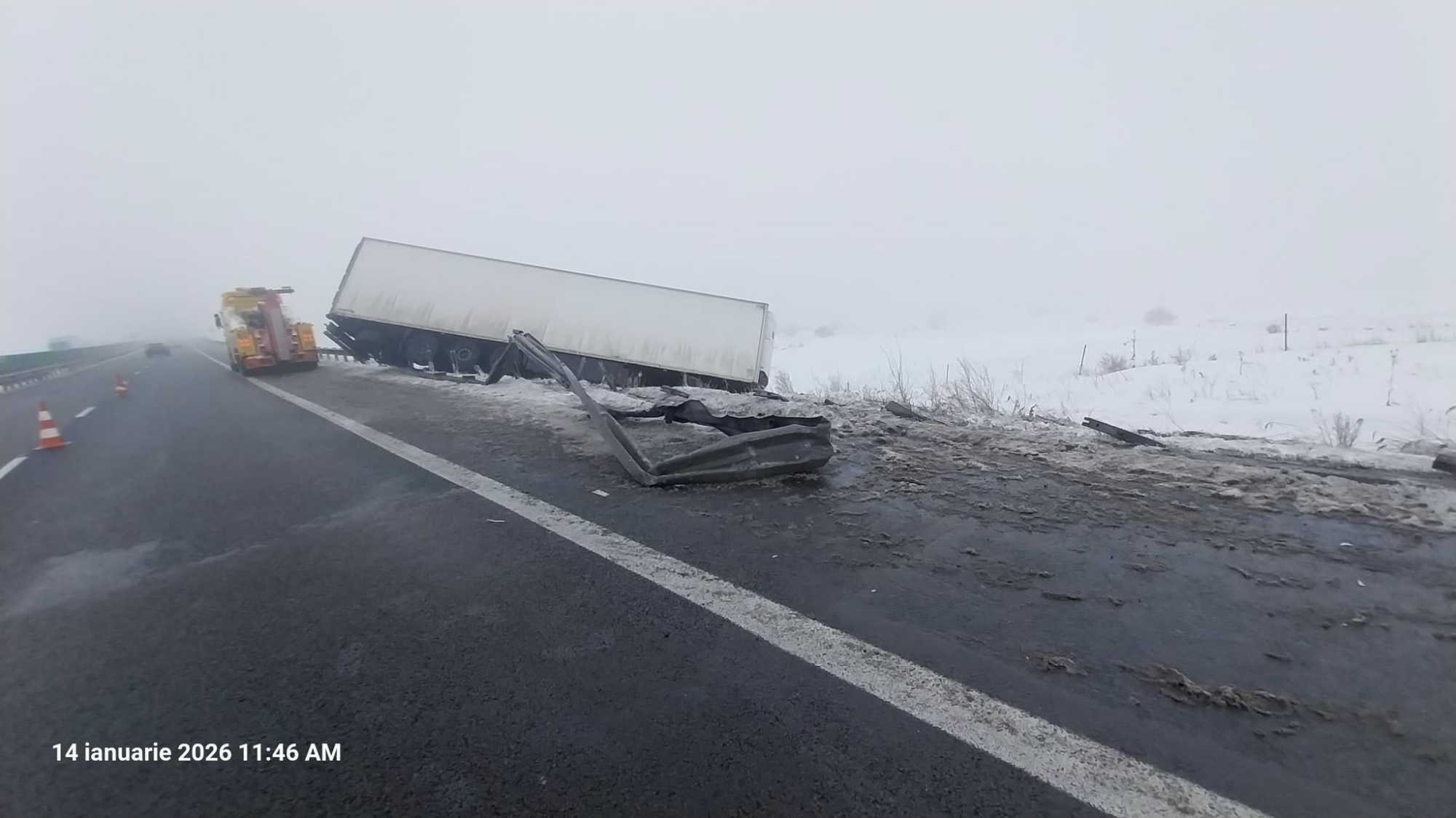 Felborult egy nyerges vontató az A1-es autópályán, Szeben–Szászsebes irányban, Szelistye és Alsóapold között – tájékoztat a Brassói Regionális Útügyi Igazgatóság (DRDP Brasov).