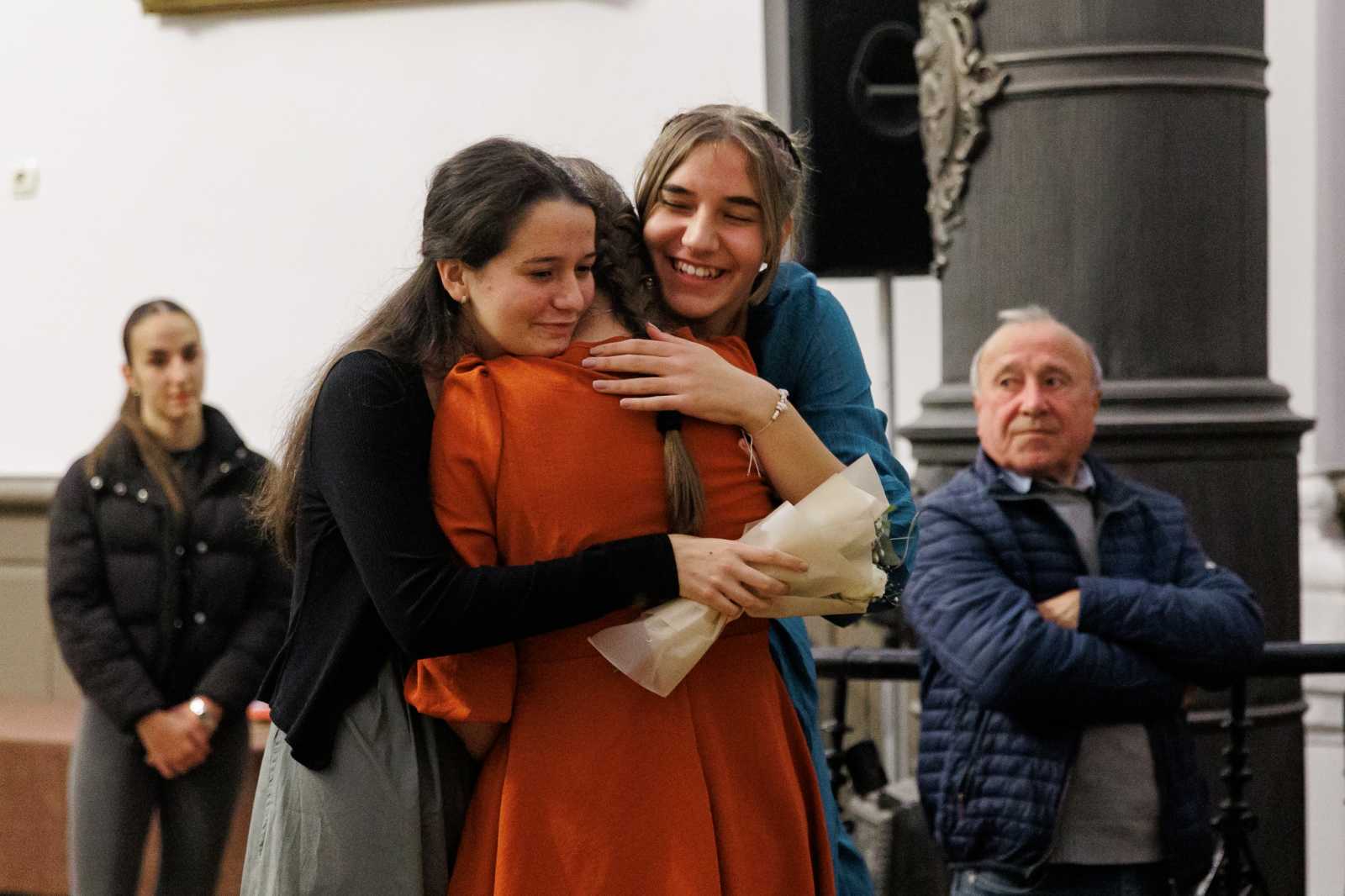 A színi előadásokat követően, a díszteremben az Érdi Szakképzési Centrum Kossuth Zsuzsanna Szakképző Iskola diákjait köszöntötték, akik immár második alkalommal vehettek részt szakmai gyakorlaton Nagyenyeden, az Erasmus+ program keretében. A gyakorlat lezárásaként, ünnepélyes keretek között, sor került az oklevelek átadására, amelyeket Móricz Melinda közélelmezés szakos tanárnő nyújtott át a magyarországi diákoknak.