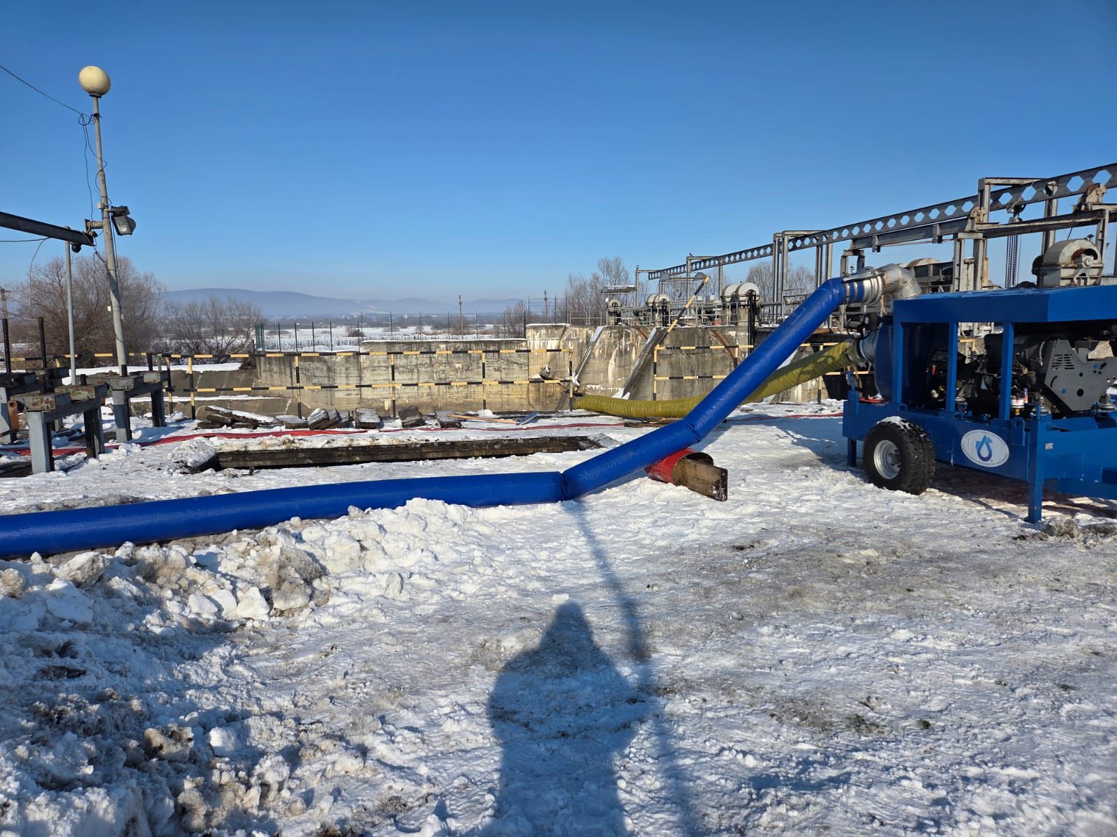 A vízszolgáltató vezetője elmondta, a nagyteljesítményű szivattyúk mindaddig üzemelnek, amíg a jeget teljes egészében el nem távolítják.
