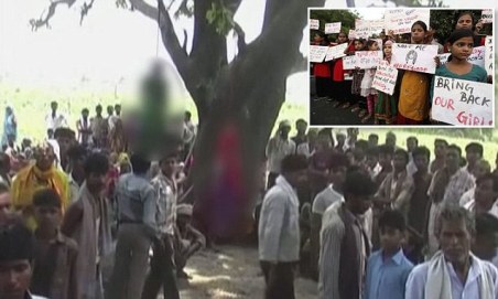 Őrizetbe vettek Indiában három férfit, köztük két rendőrt, akik a gyanú szerint csoportosan megerőszakoltak és megöltek két tizenéves lányt, majd a holttesteiket felakasztották egy fára.